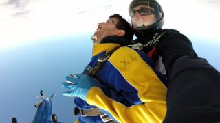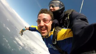 The 5 minute glide, having deployed the parachute was magical, also. Steering was cool, though you're not sure how hard you should pull at first. It was the first moment I had to concentrate. You are still very high, it is still a rush, but the free fall was better.